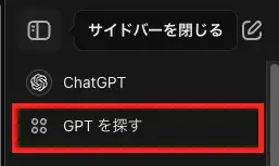 次に左のメニューの上の方にある「GPTを探す」をクリックします。