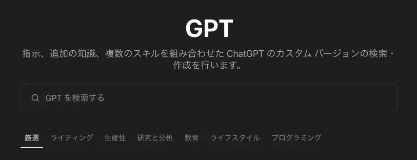 GPTsはスマホのアプリストアのように他の人が作ったものを使える機能と、自分が作成したGPTsを使える機能の2つがあります。